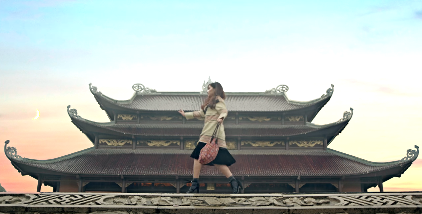 Chùa Bái Đính được chọn là địa điểm họp lớp kỷ niệm 10 năm ra trường trong MV Bao Giờ Lấy Chồng, thay vì bạn bè dẫn con cái theo cùng thì Bích Phương vẫn tung tăng đi “một mình”.