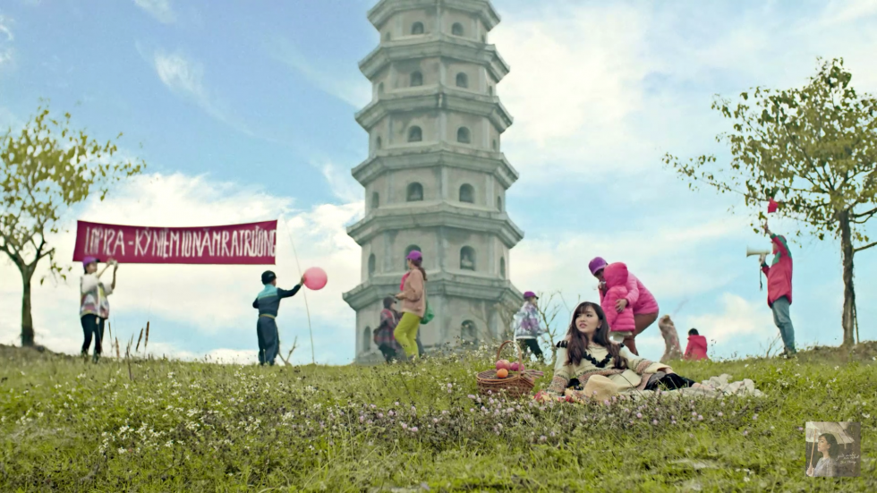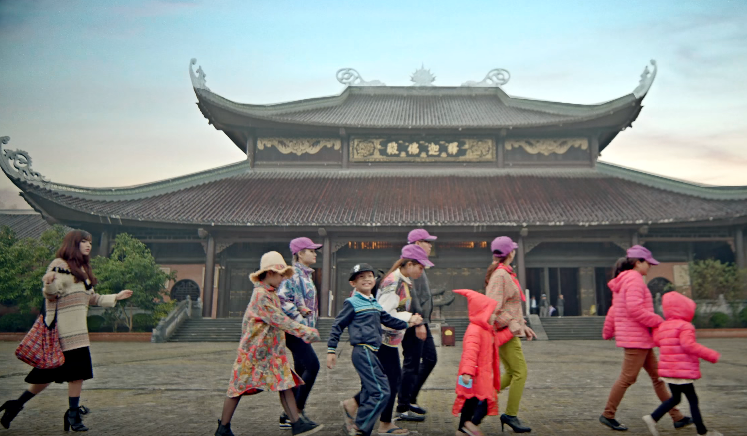Chùa Bái Đính được chọn là địa điểm họp lớp kỷ niệm 10 năm ra trường trong MV Bao Giờ Lấy Chồng, thay vì bạn bè dẫn con cái theo cùng thì Bích Phương vẫn tung tăng đi “một mình”.